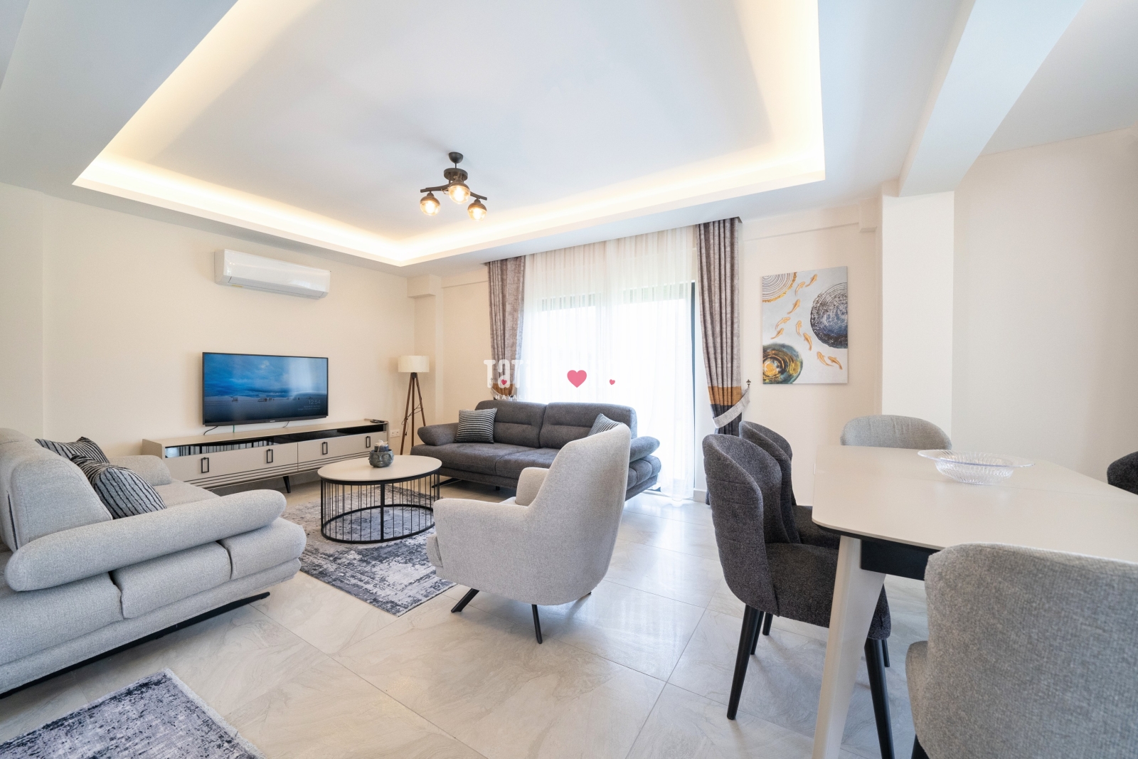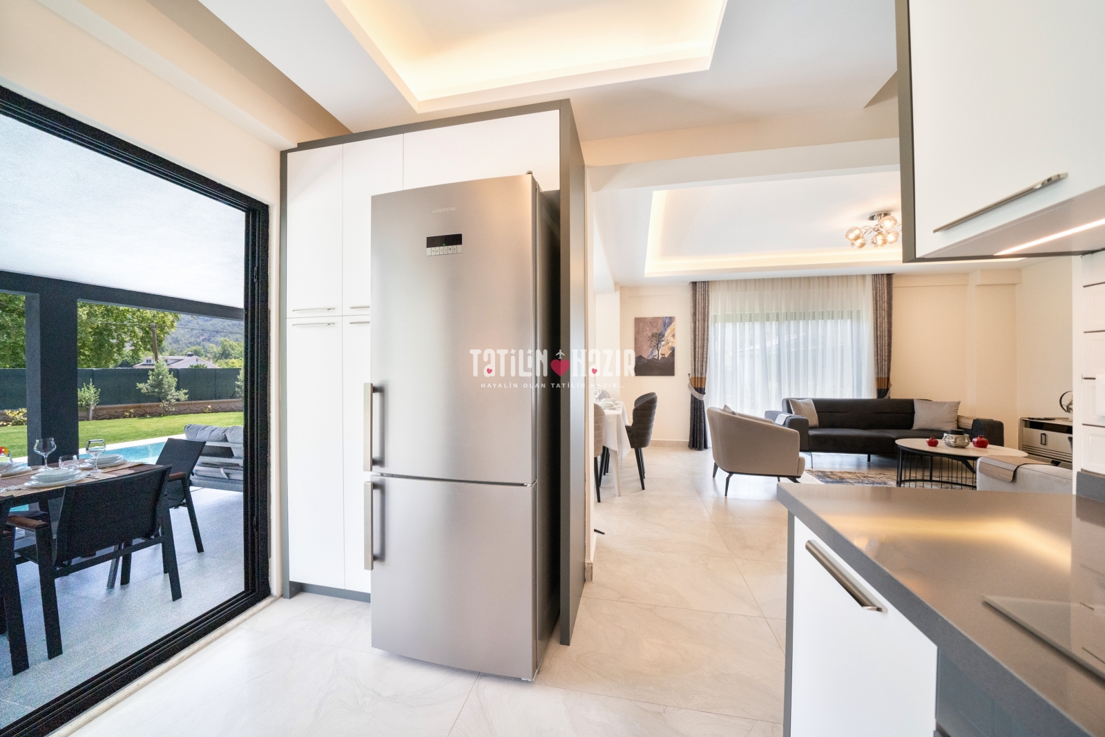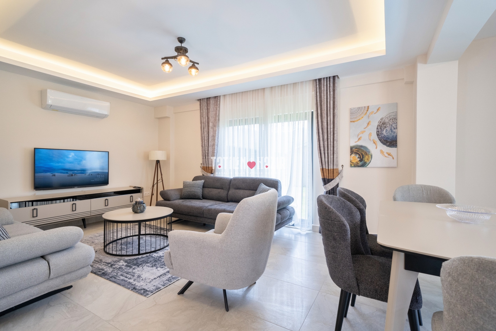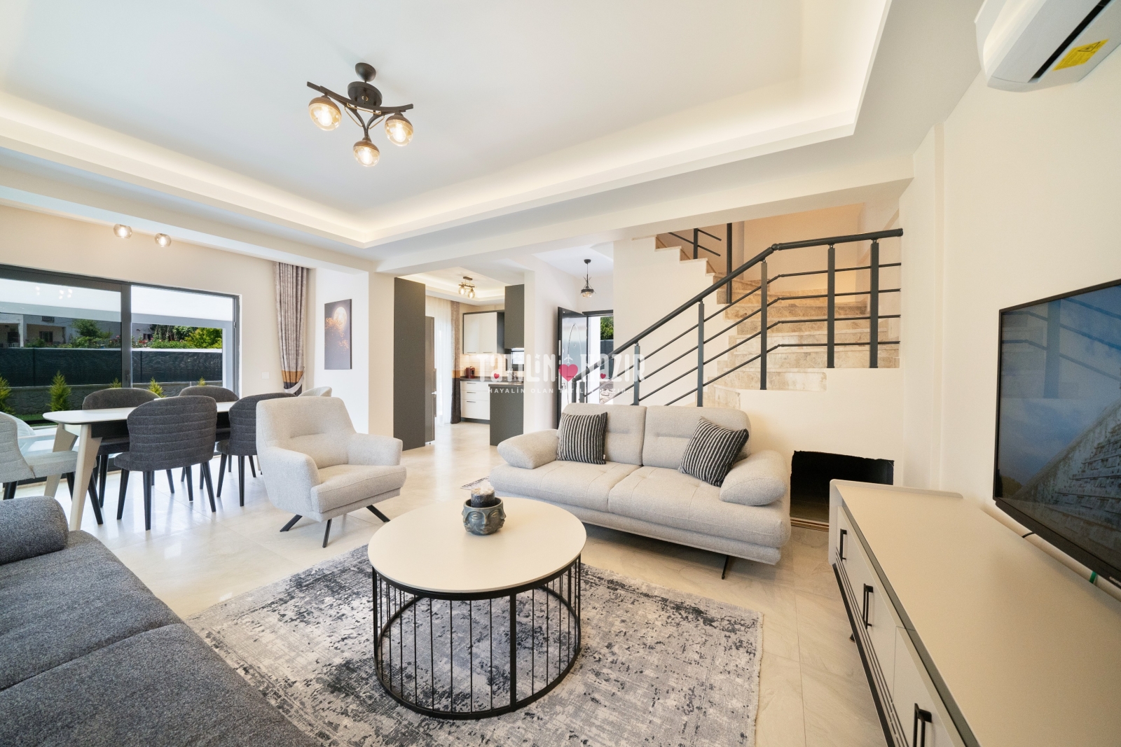 Modern Tasarım: Zarif iç dekorasyon, modern mobilyalar ve kaliteli malzemelerle tasarlanmış geniş bir yaşam alanı.
