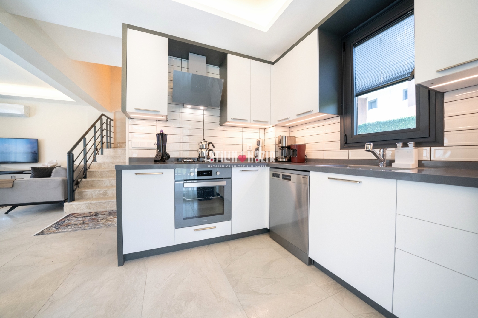 Tam Donanımlı Mutfak: İhtiyacınız olan her şeye sahip, şık mutfak.