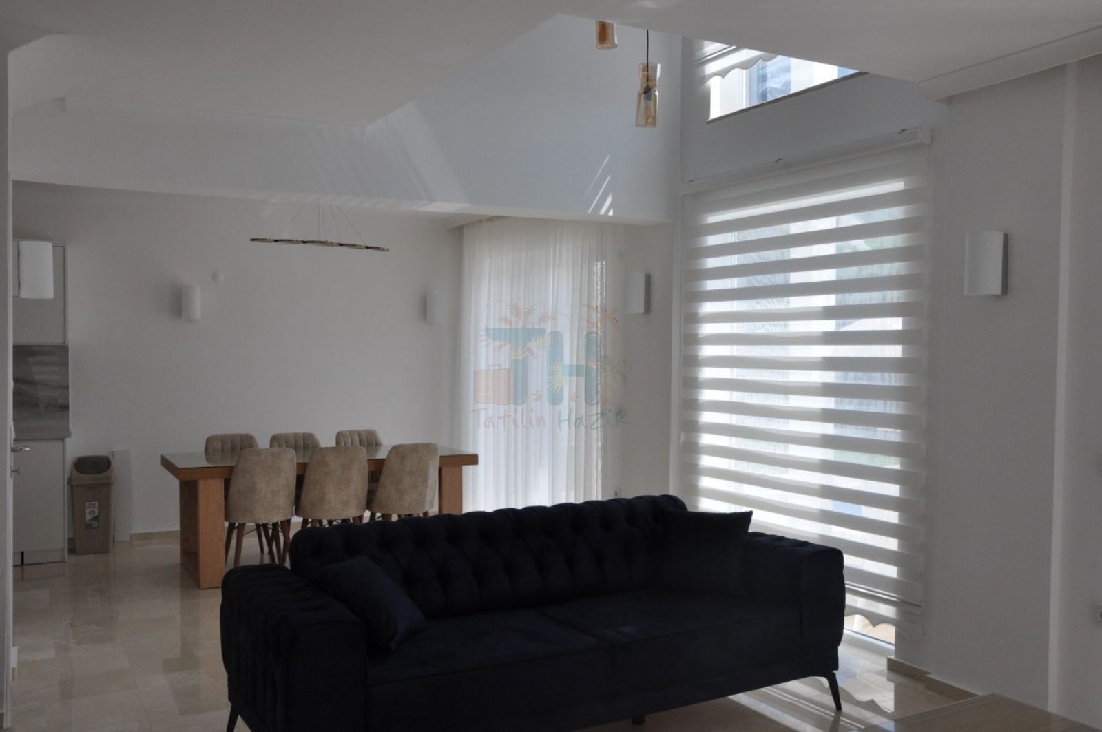 Modern Tasarım: Zarif iç dekorasyon, modern mobilyalar ve kaliteli malzemelerle tasarlanmış geniş bir yaşam alanı.