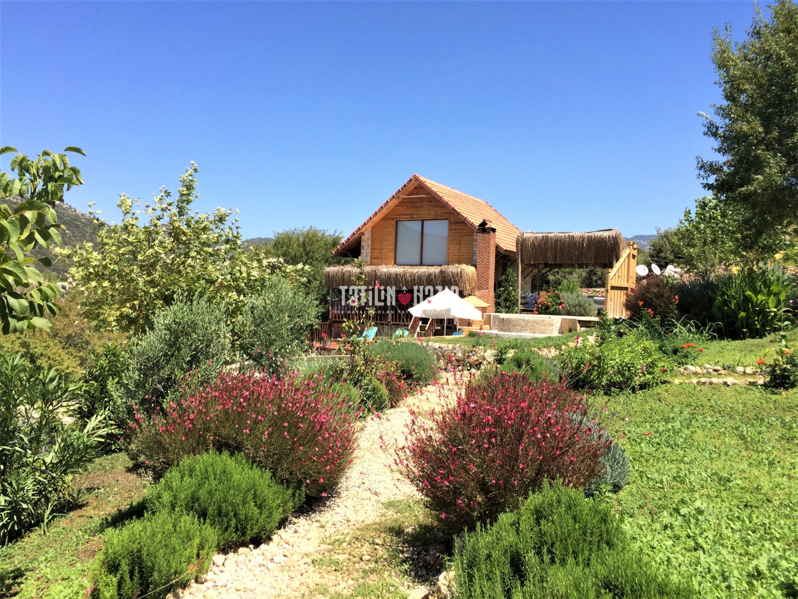 Badem Ev, kardeş evi Ceviz Ev ile birlikte 5000m2, büyüklüğünde doğası bozulmamış bir arazide yer alıyor. Minik patikalarla ulaşabildiğiniz her bir birim kendi özel geniş bahçesine sahip. Badem Ev'in oturum alanı veranda dahil 65m2, ayrıca 30m2 asma kata sahip. Unutamayacağınız muhteşem deniz ve dağ manzarası büyüleyici zengin flora ile tamamlanıyor.