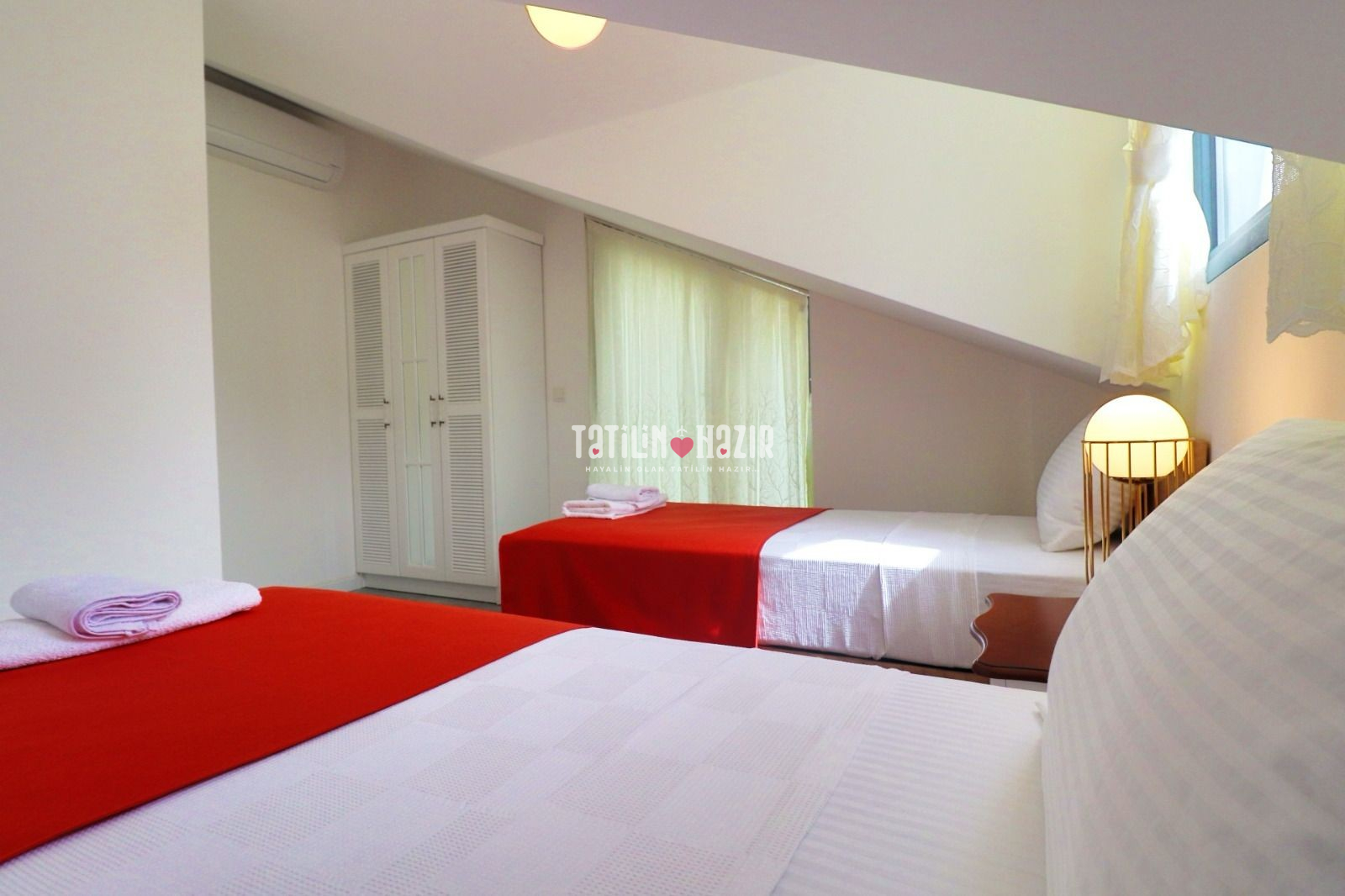 3. Yatak Odası: 2 tek kişilik yatak, banyo, klima