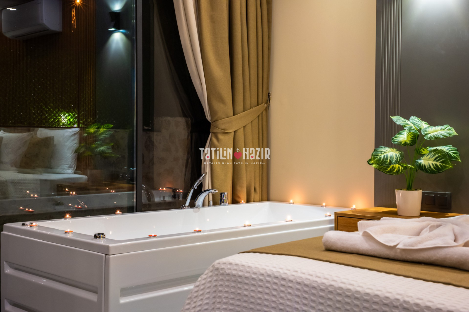 1.Yatak Odası: 1adet çift kişilik yatak, klima, komodin, elbise dolabı, makyaj masası, jakuzi, banyo ,wc