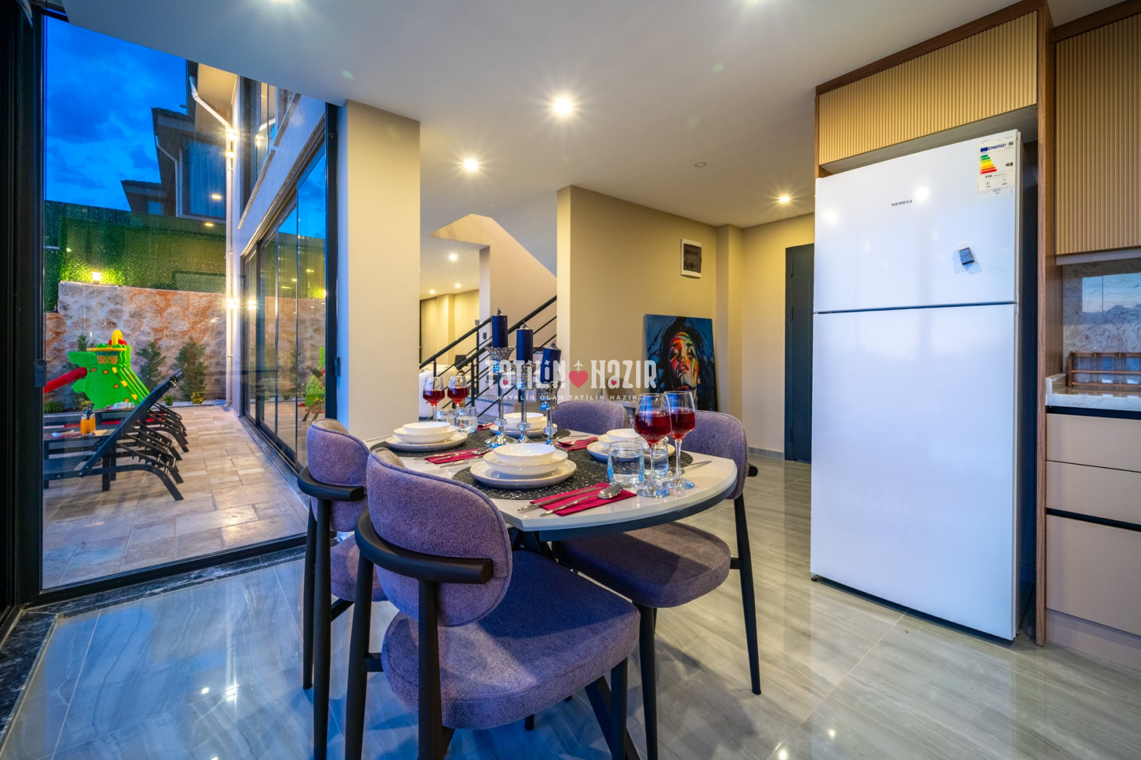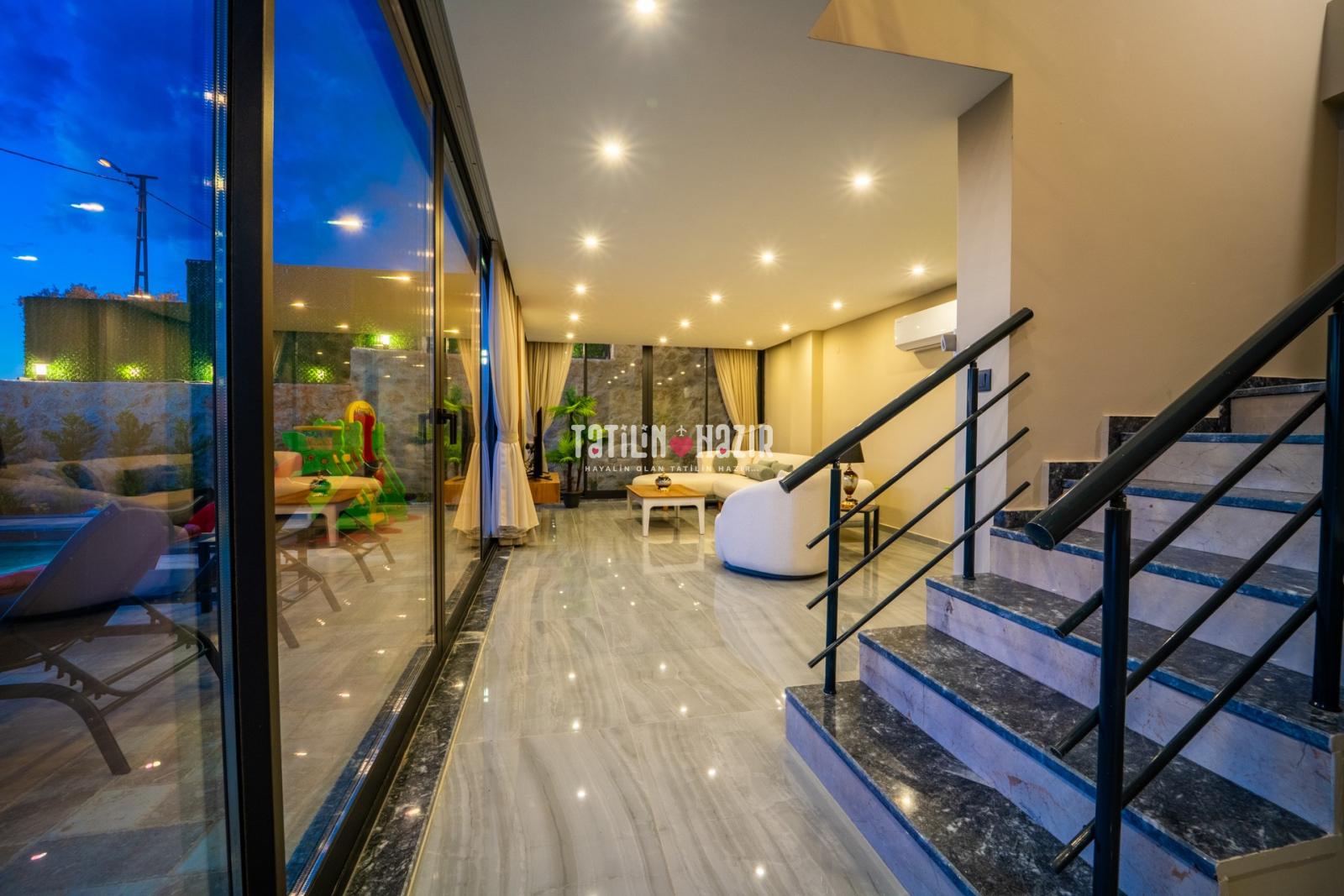 Modern Tasarım: Zarif iç dekorasyon, modern mobilyalar ve kaliteli malzemelerle tasarlanmış geniş bir yaşam alanı.