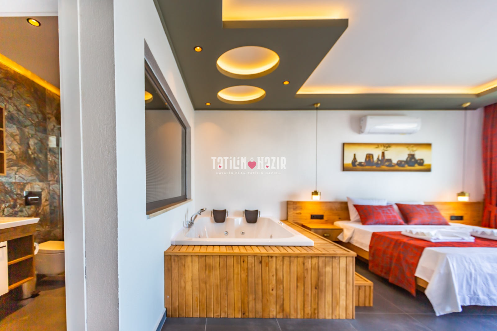 1.Yatak Odası: 1adet çift kişilik yatak, klima, komodin, elbise dolabı, makyaj masası, TV, jakuzi, banyo ,wc