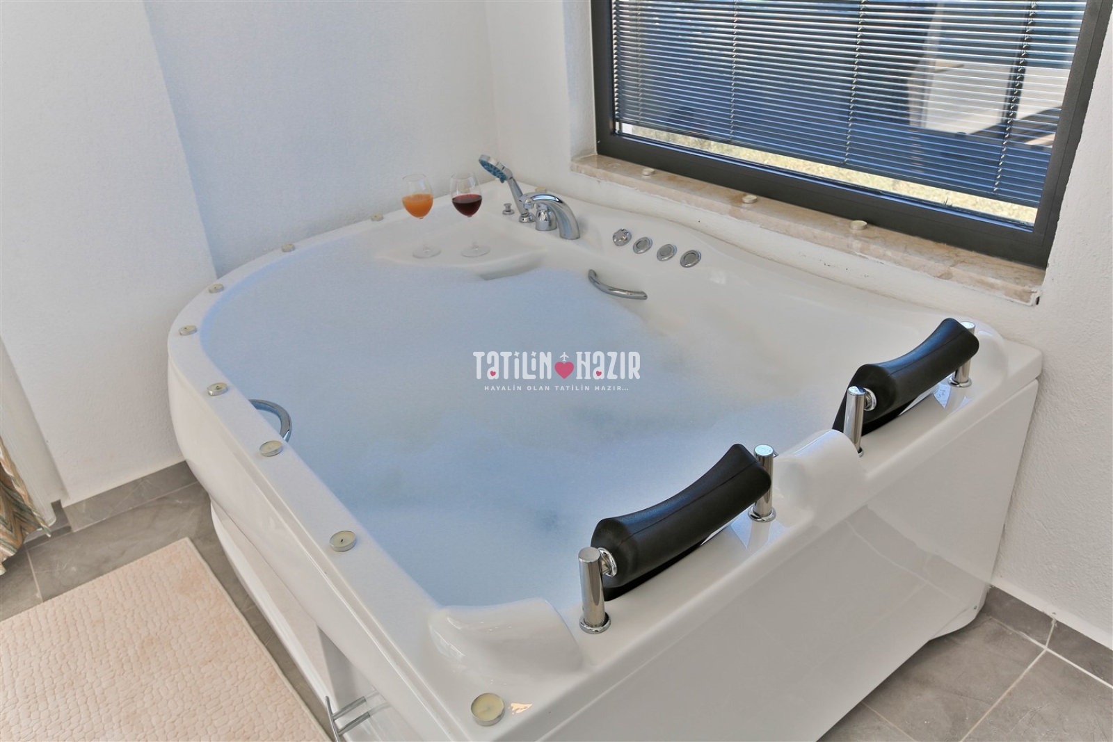 Villa Kaya Patara nın 1. yatak odasında 1 adet çift kişilik yatak, bebek yatağı ve jakuzi , 2. yatak odasında 2 tane tek kişilik yatak ve jakuzi bulunmaktadır. İç kısmı modern renkler ile dekore edilmiş olup sizler için tüm detay düşünülmüştür. Havuz terası ve bahçe kısmı muhafazakar olan Villa Kaya Patara çekirdek aileler ve balayı çiftler için ideal bir seçenektir.