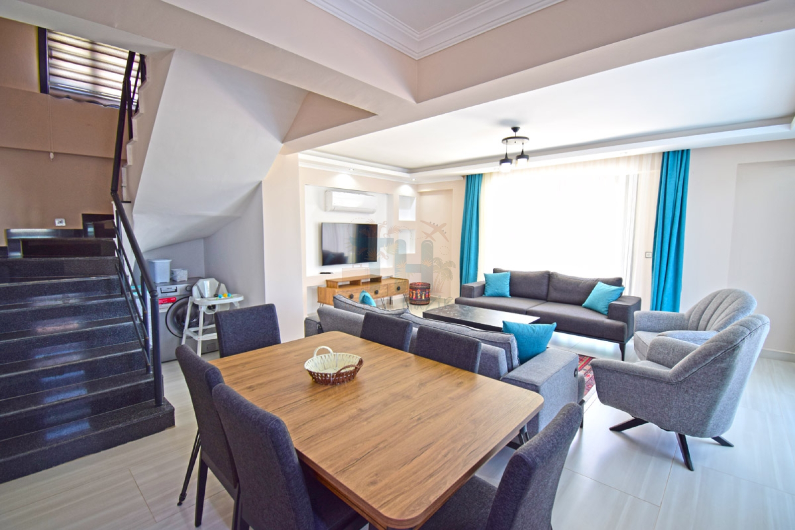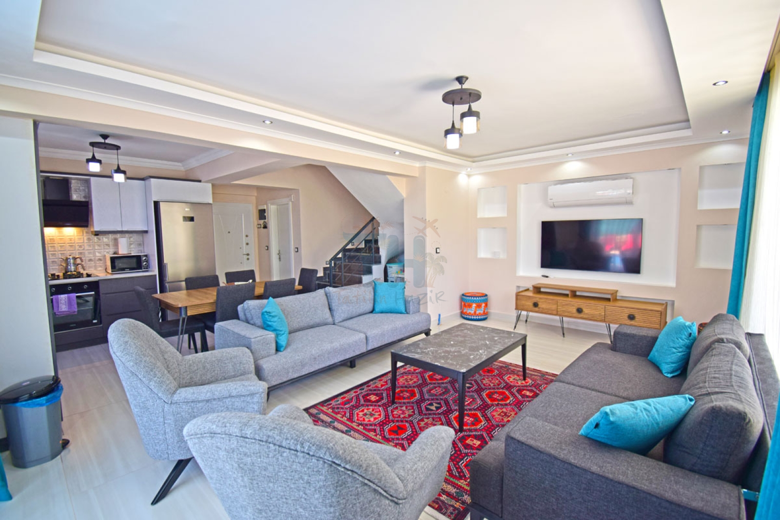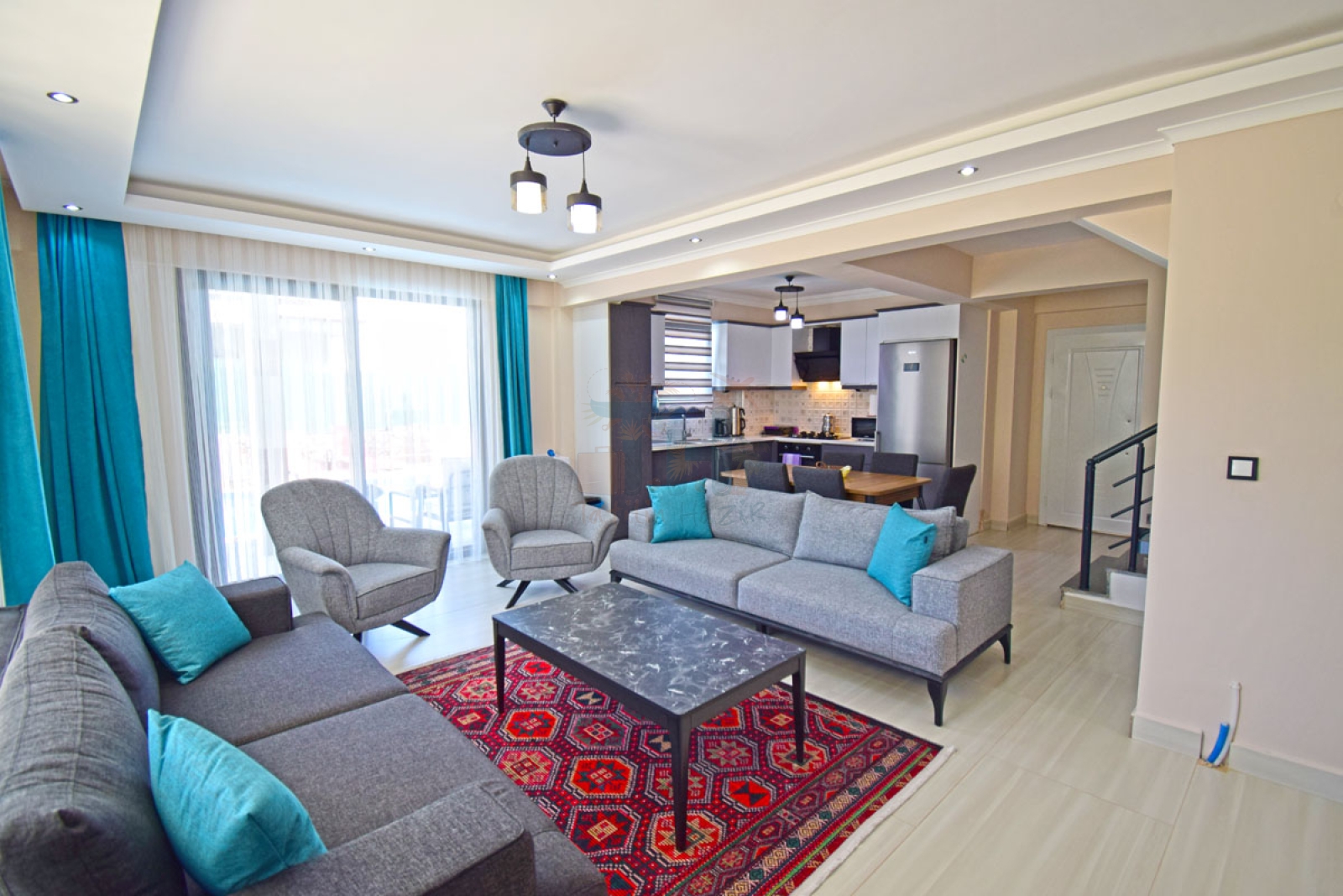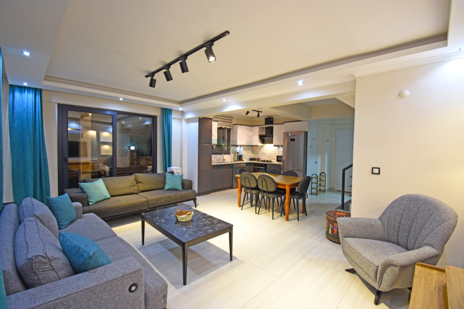 Modern Tasarım: Zarif iç dekorasyon, modern mobilyalar ve kaliteli malzemelerle tasarlanmış geniş bir yaşam alanı.
