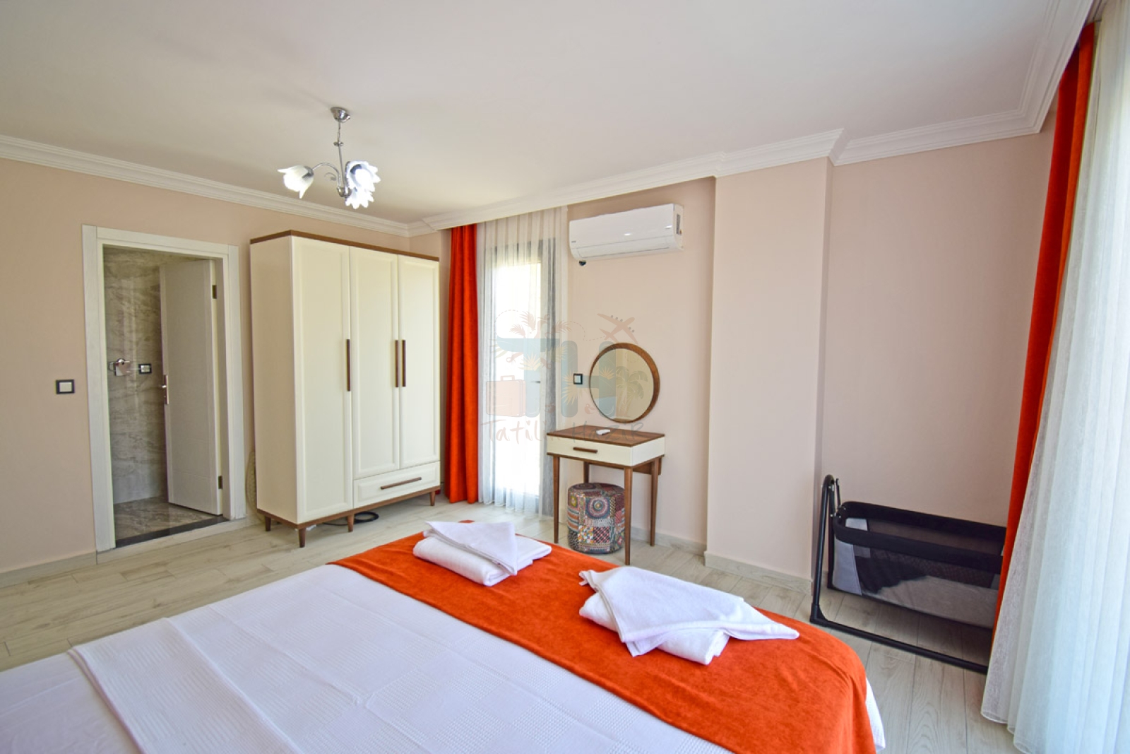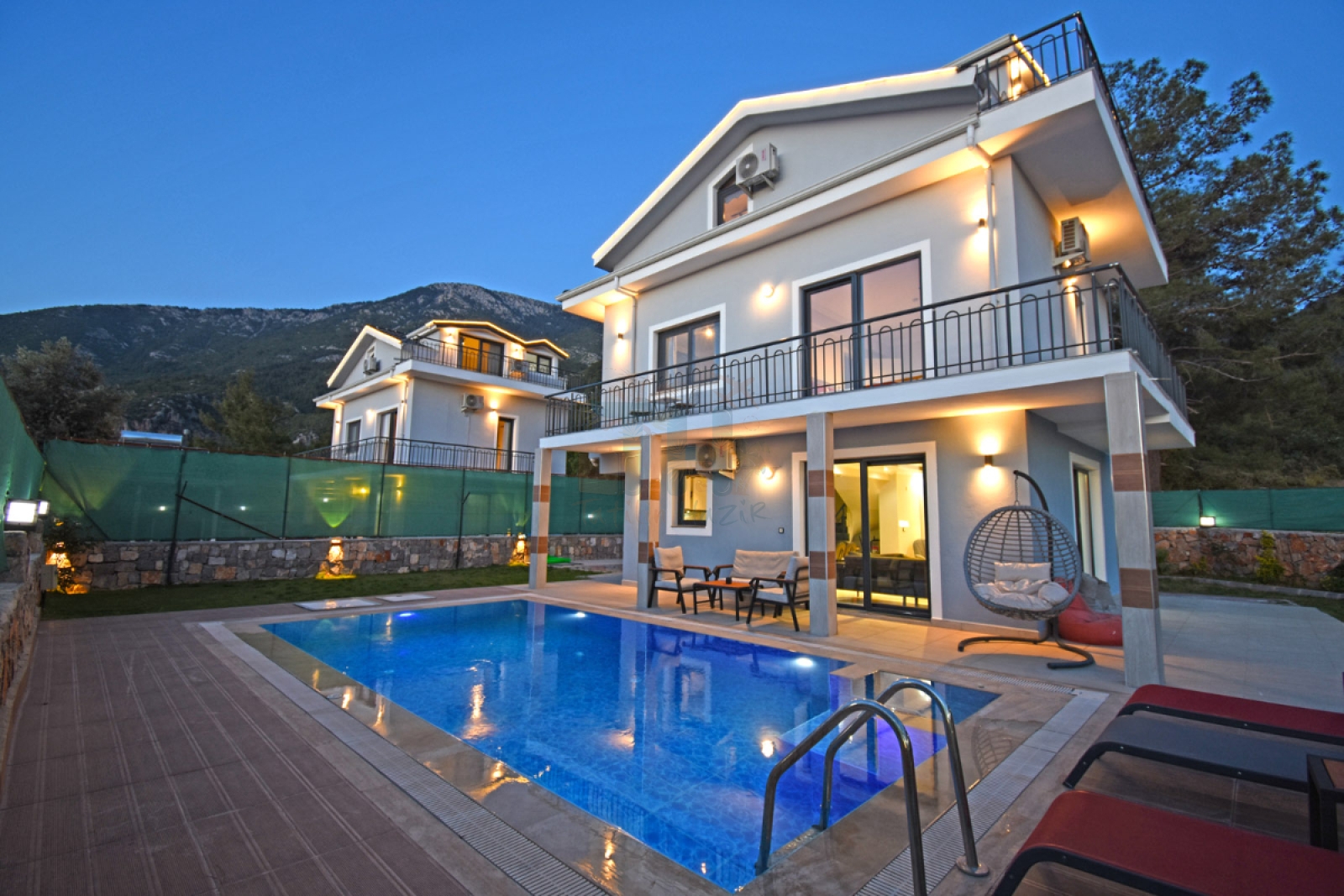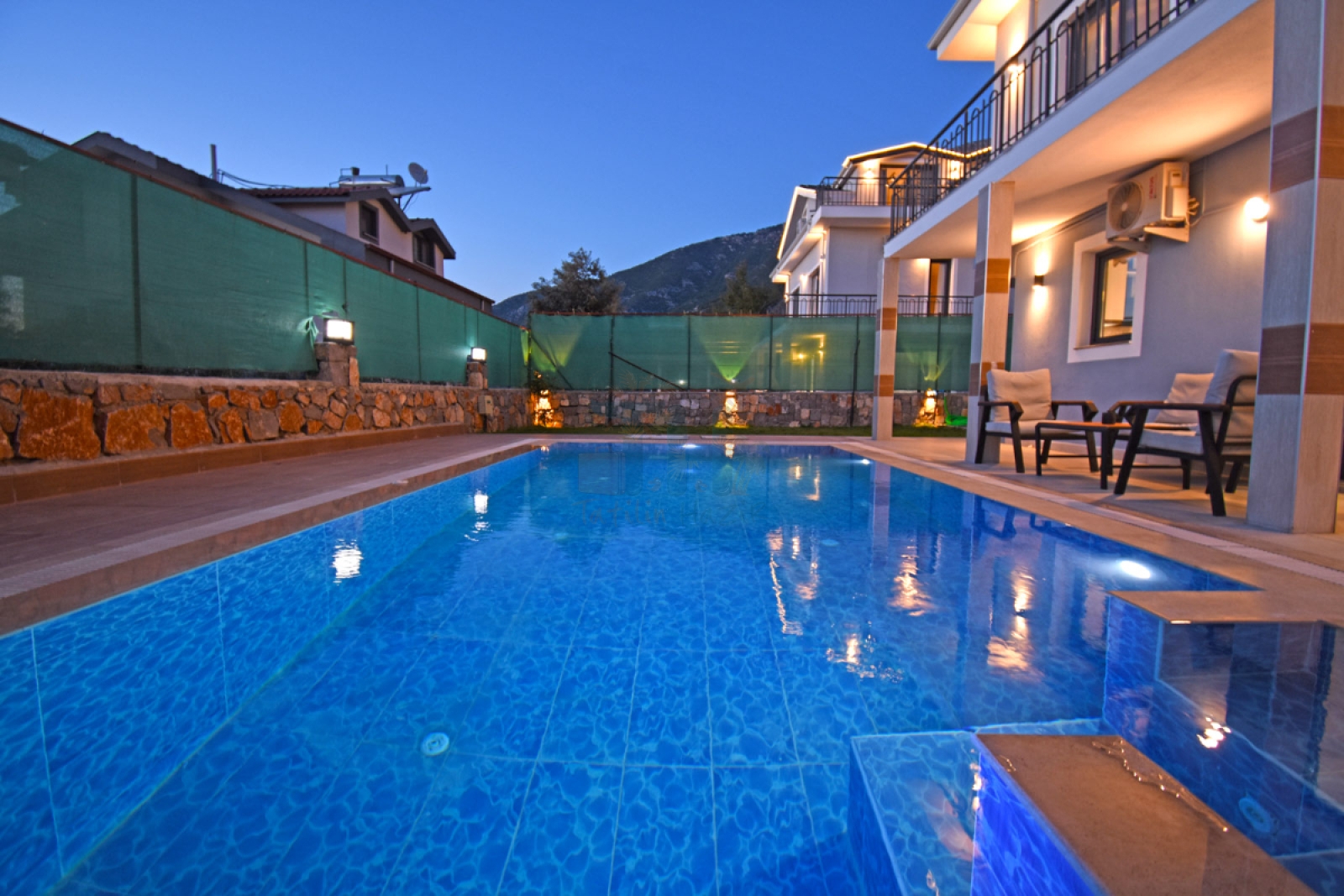 Fethiyenin doğal güzellikleri arasında yer alan bu 4 yatak odalı jakuzili villa, 8 kişilik konaklama kapasitesiyle hem rahat hem de lüks bir tatil fırsatı sunuyor. Özel yüzme havuzunuzda güneşin tadını çıkarabilir, günün yorgunluğunu ana yatak odasında bulunan jakuzinizde atabilirsiniz. Villa, tam donanımlı bir mutfak, geniş bir oturma alanı ve modern dekorasyonuyla sizi bekliyor.