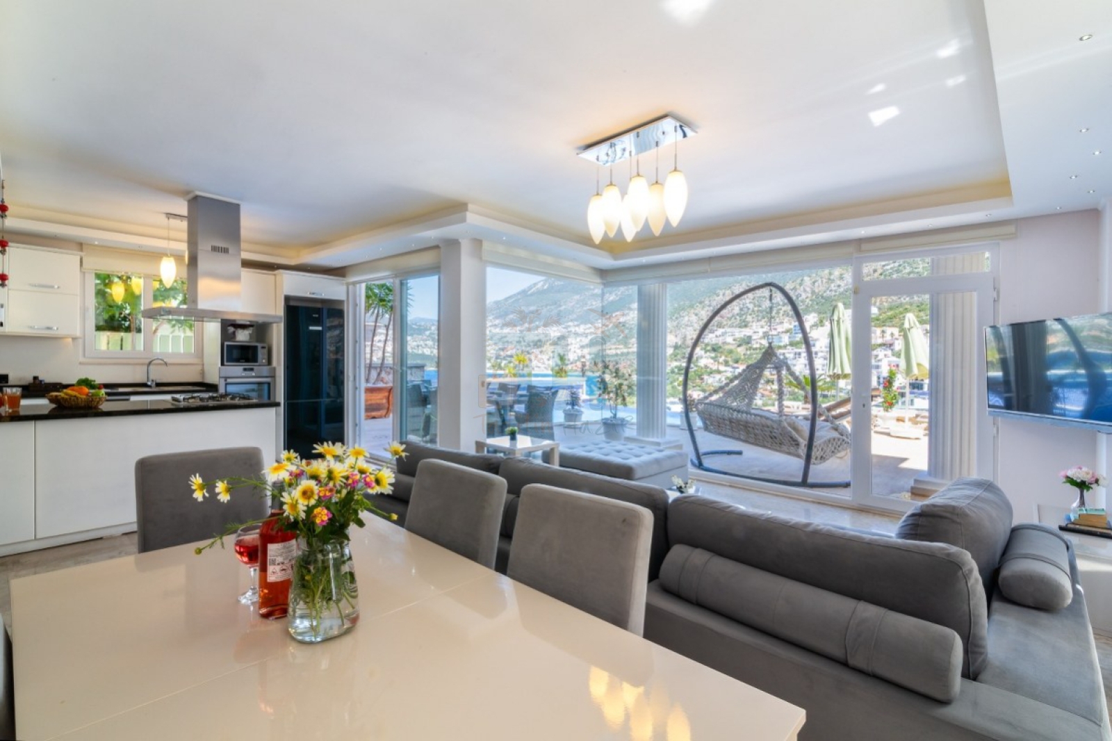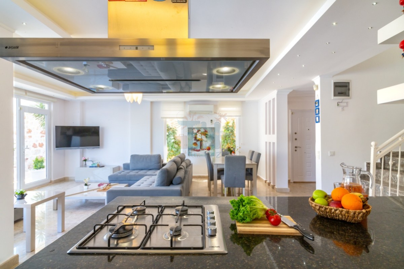 Modern Tasarım: Zarif iç dekorasyon, modern mobilyalar ve kaliteli malzemelerle tasarlanmış geniş bir yaşam alanı.