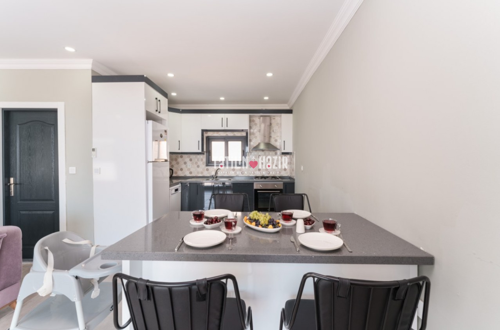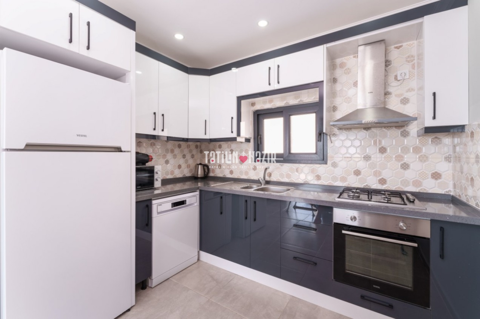 Tam Donanımlı Mutfak: İhtiyacınız olan her şeye sahip, şık mutfak.