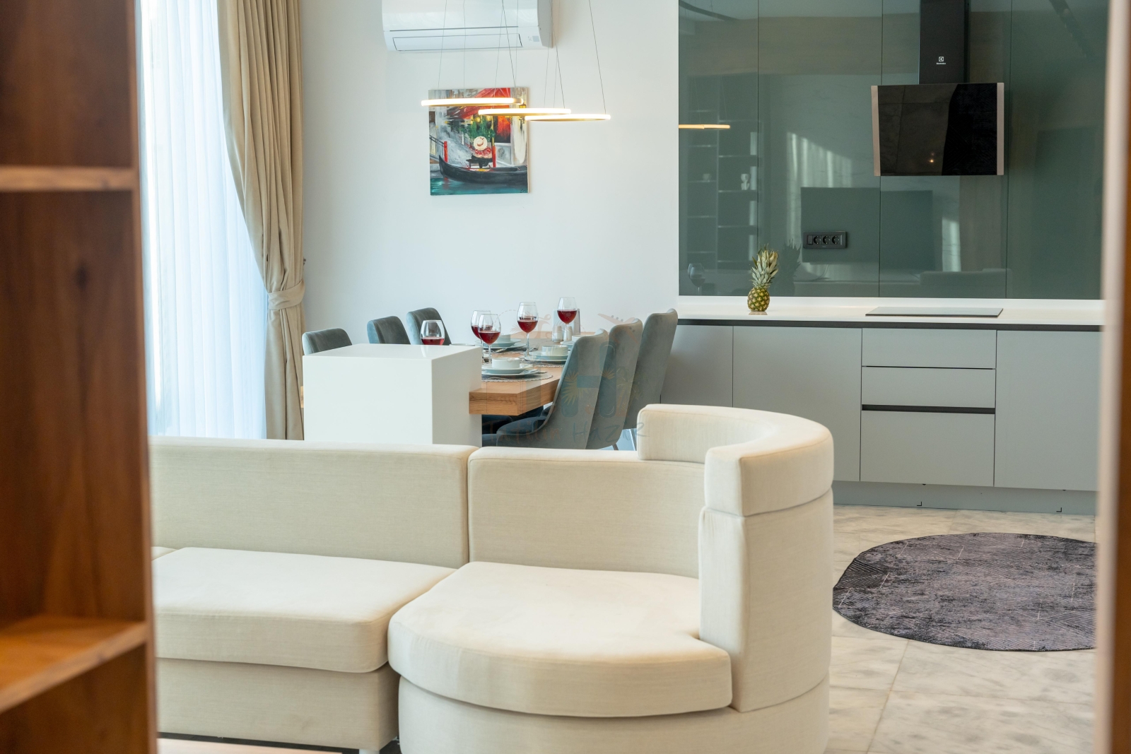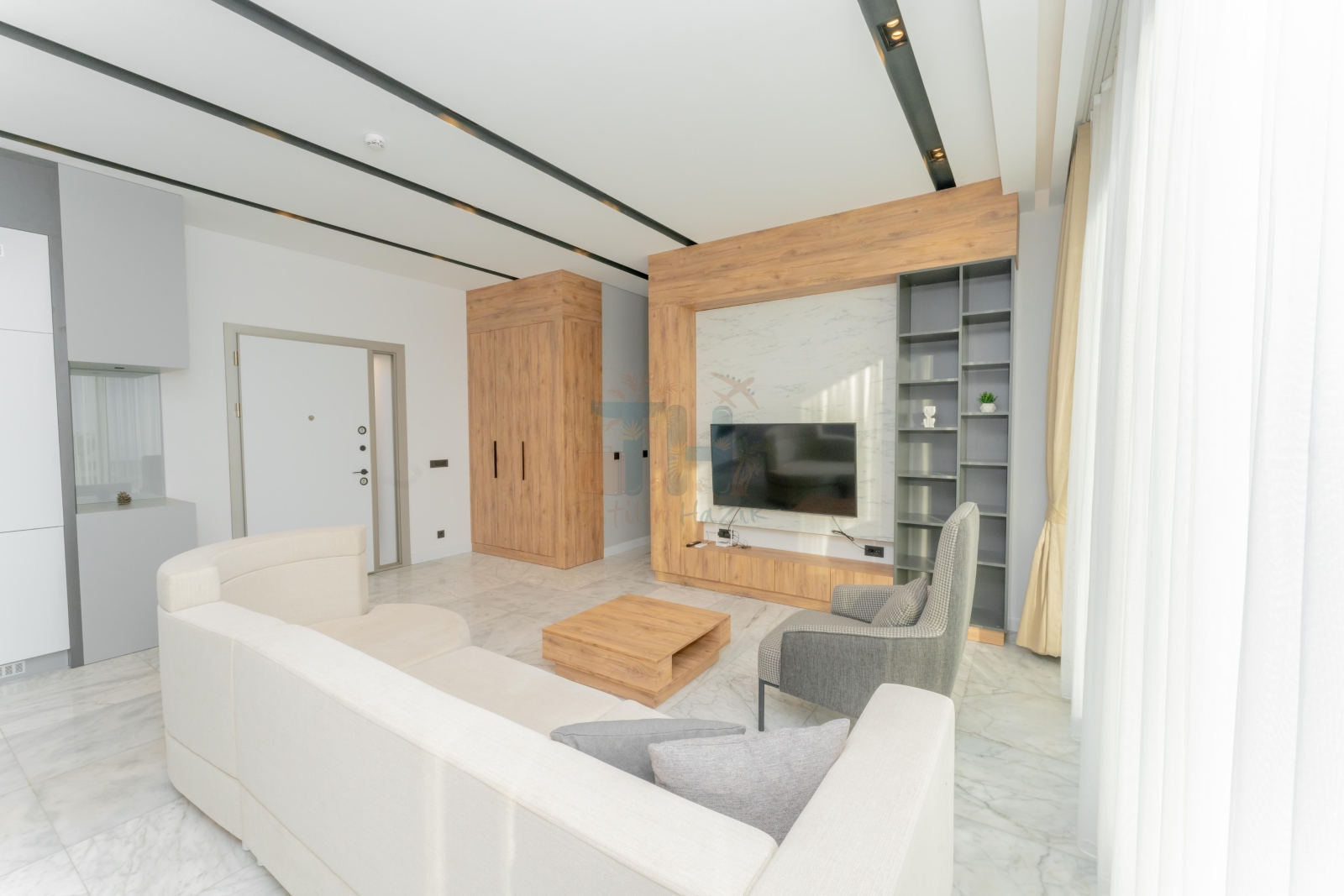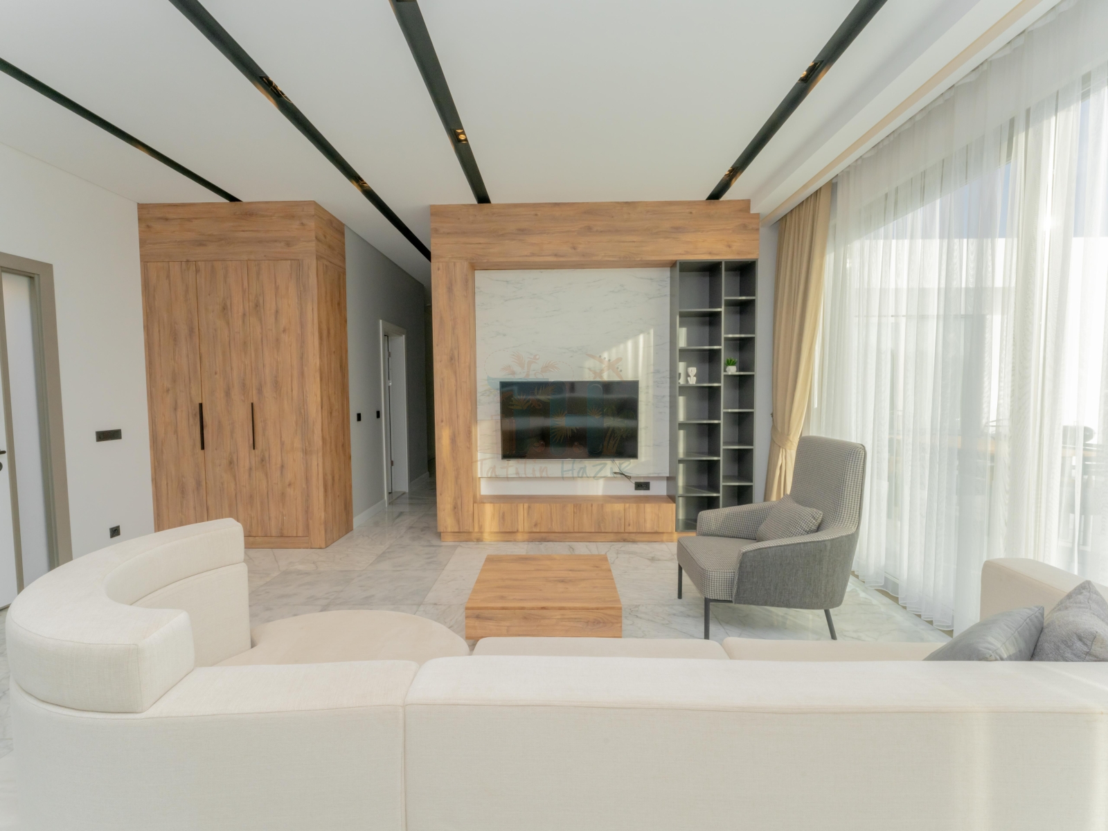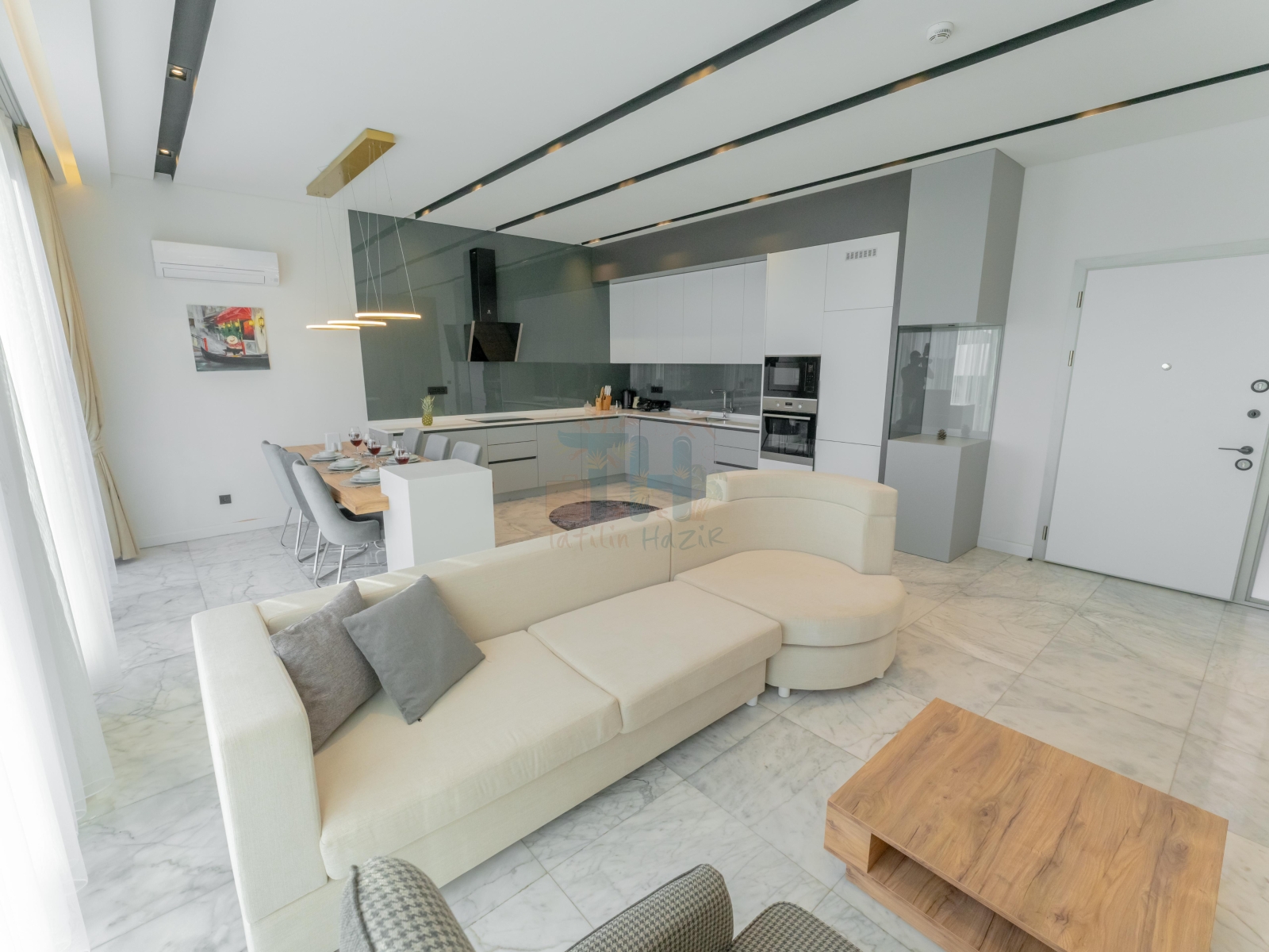 Modern Tasarım: Zarif iç dekorasyon, modern mobilyalar ve kaliteli malzemelerle tasarlanmış geniş bir yaşam alanı.