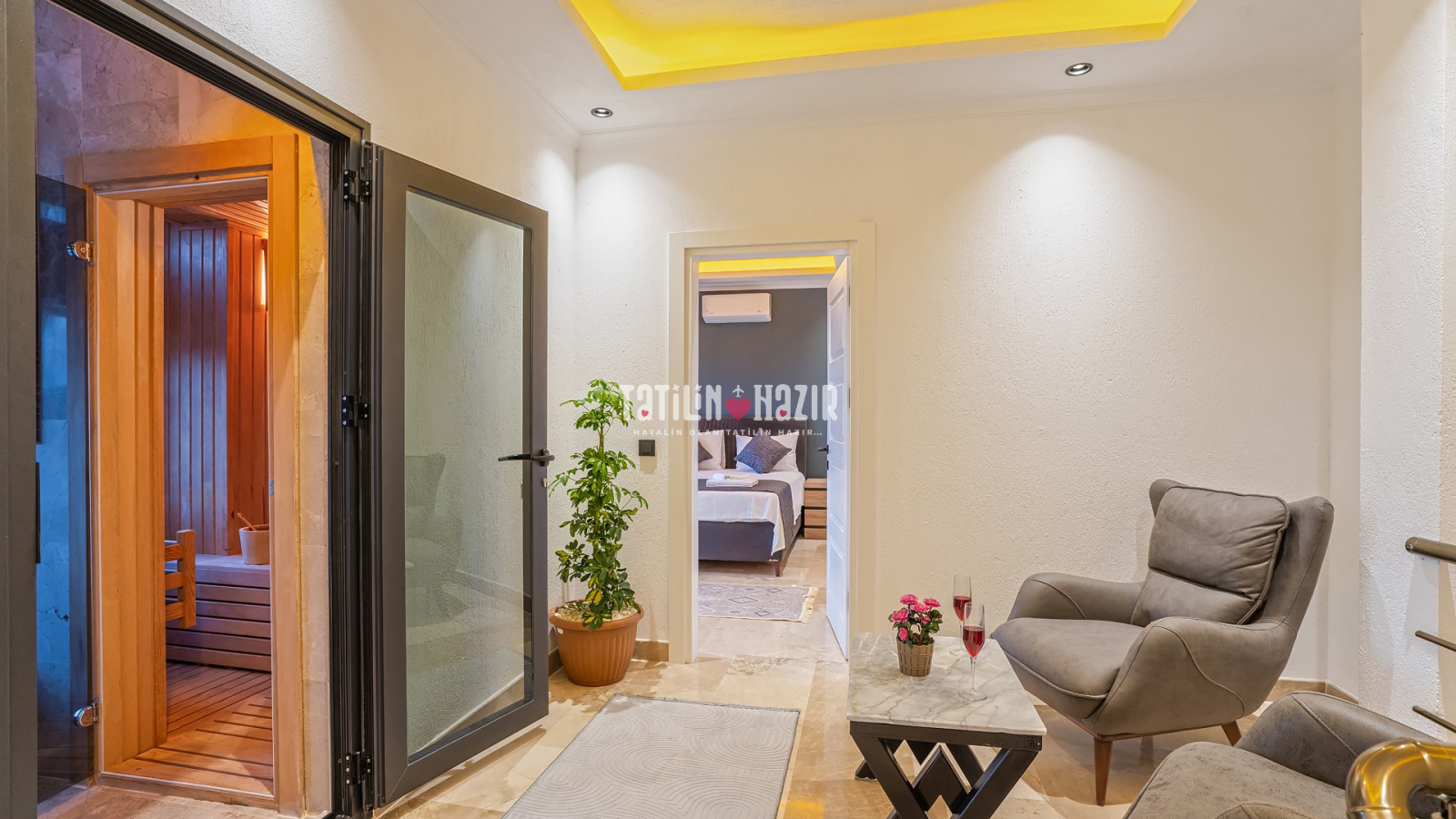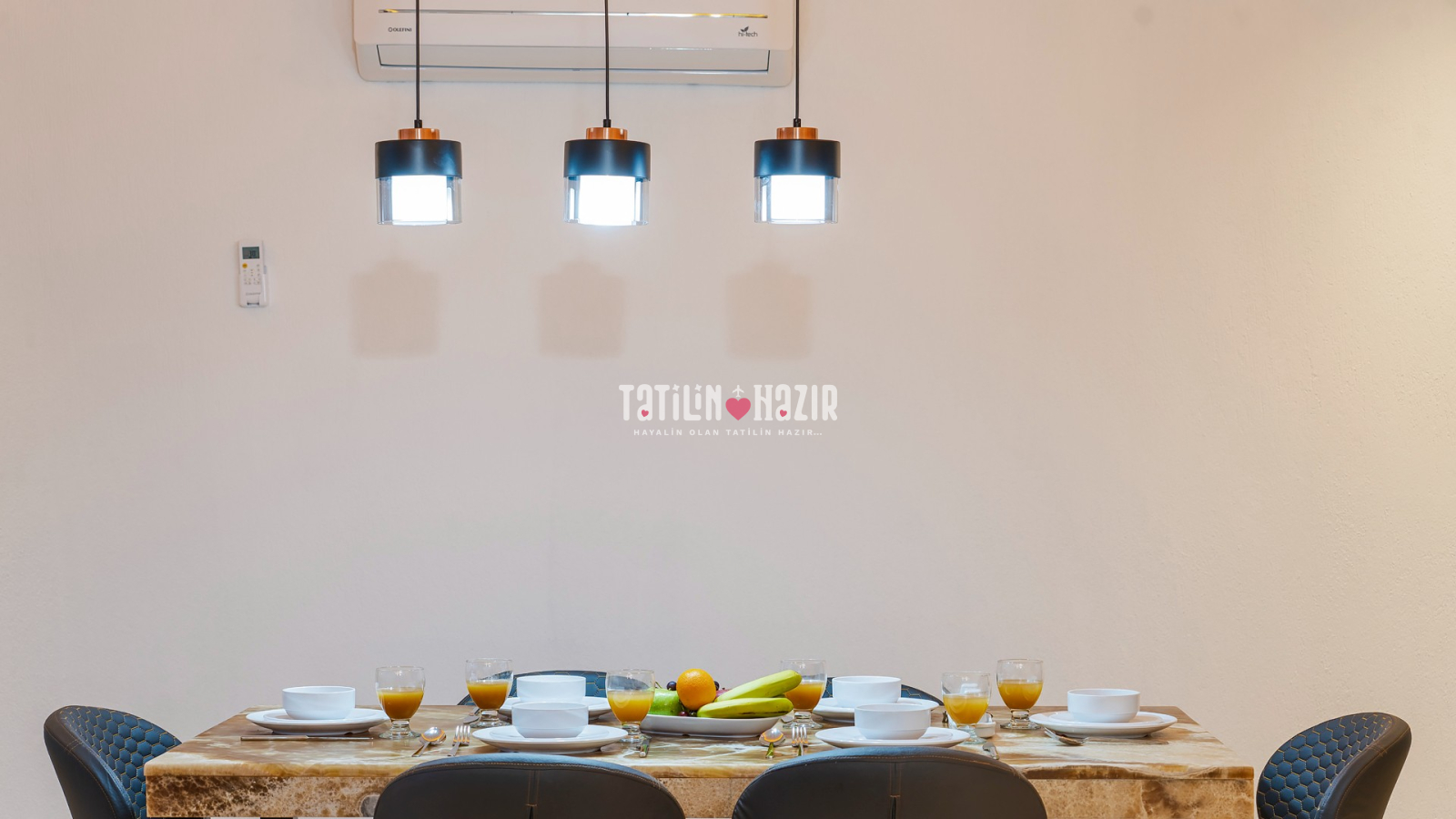 Kaliteli mobilyalar, zevkli iç dekorasyon ve rahat yaşam alanlarıyla elit bir tatil sizi bekliyor! 🖼️✨
